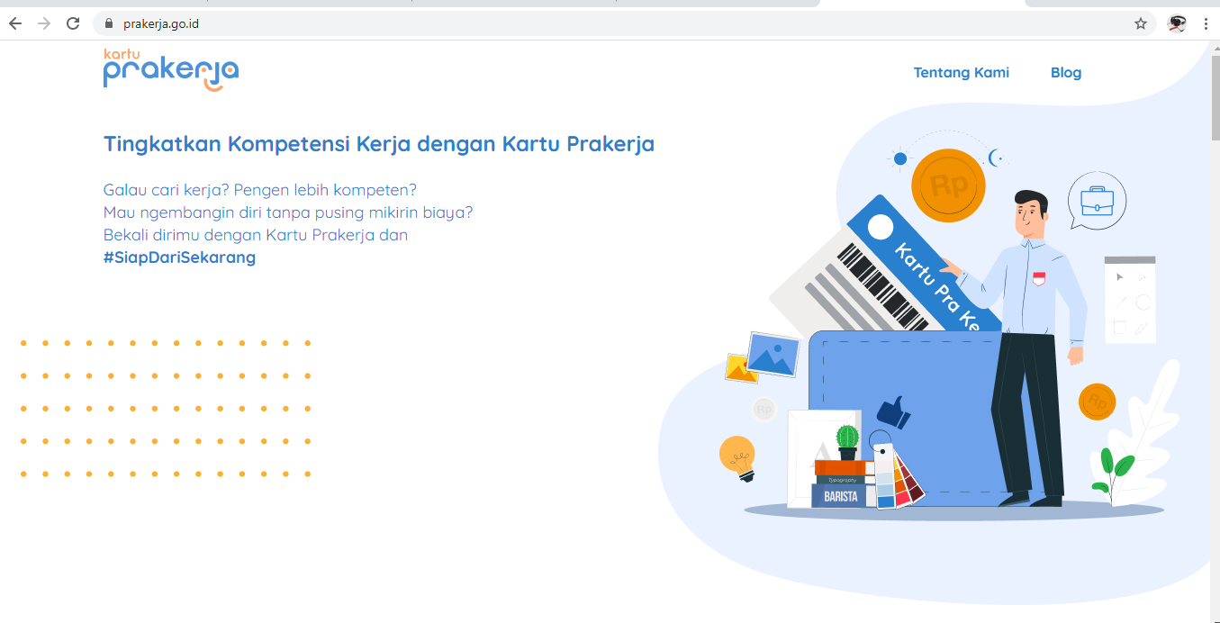 Kartu prakerja adalah bantuan biaya pelatihan bagi masyarakat indonesia yang ingin memiliki atau meningkatkan keterampilannya. Login www prakerja go id, beli pelatihan prakerja cepat sertifikat agar insentif cepat cair barista kopi setelah itu login prakerja, login kartu prakerja pada alamat login prakerja go id login. Pendaftaran kartu pra kerja pun resmi dibuka mulai 11 april sampai 16 april 2020 melalui situs www.prakerja.go.id. Masuk laman prakerja.goi.id, login akun, dan klik menu daftar kartu prakerja.